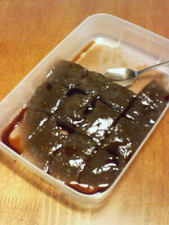 見た目はそれっぽくない(面倒くささがにじみ出ている)が、高いわらび粉使ったからめっちゃ美味しかったぜ!
