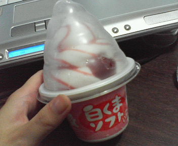 パフェは食べられなかったけど、スーパーで白くまさん(いちご)を買ってもらった。